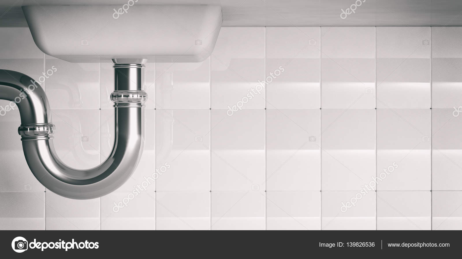 Water pipes under sink. 3d illustartion